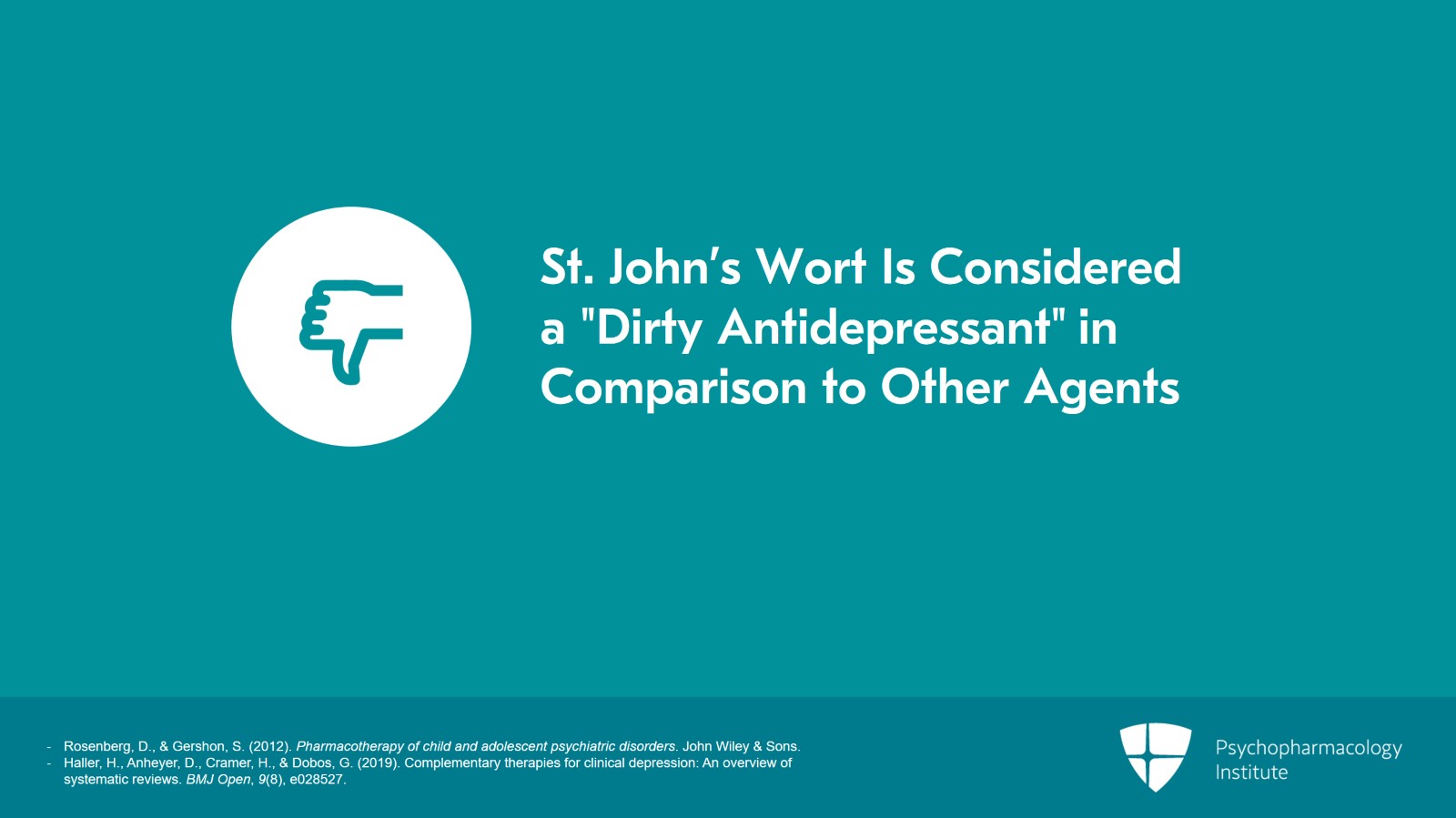Thus, for clinical use, St. John’s wort is considered to be a dirty antidepressant especially in comparison to other single agent pharmaceuticals.