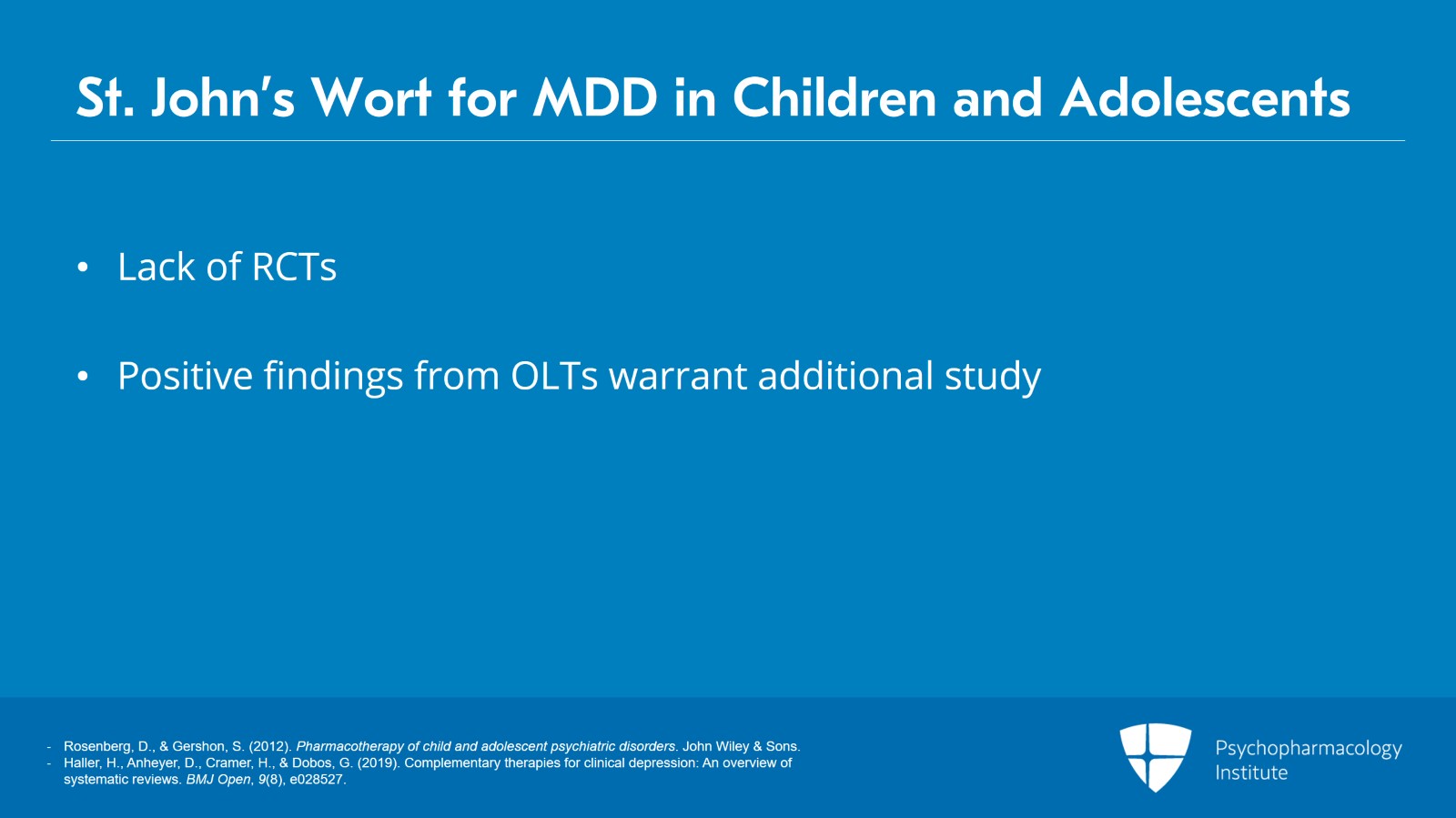 There are currently no published randomized controlled trials of St. John’s wort for the treatment of depression in children and adolescents.