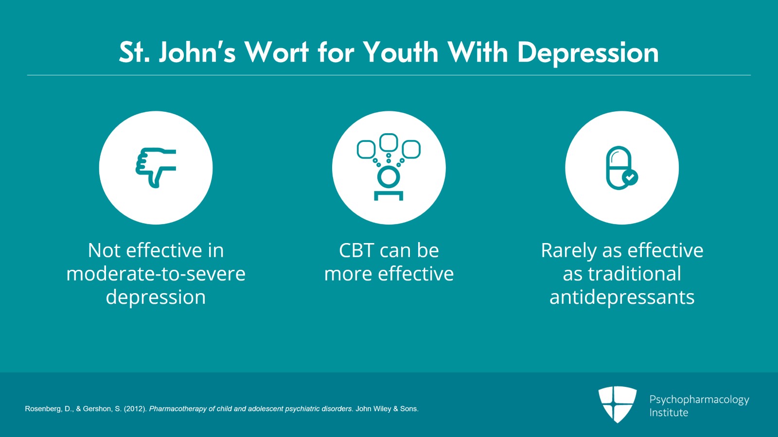 However, current results don’t yet support the use of St. John’s wort for the treatment of depression in children and young people.