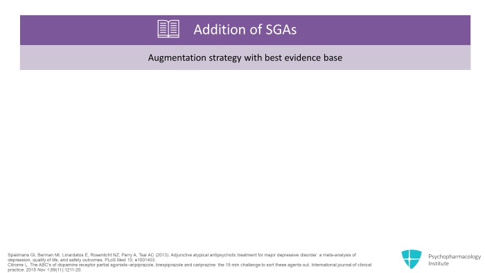 So moving on to second-generation antipsychotic drugs. So the augmentation strategy with the best evidence base is the addition of atypical antipsychotic drugs.