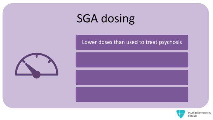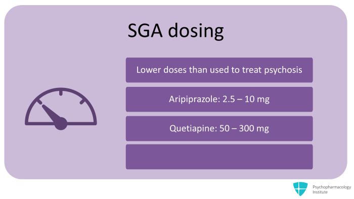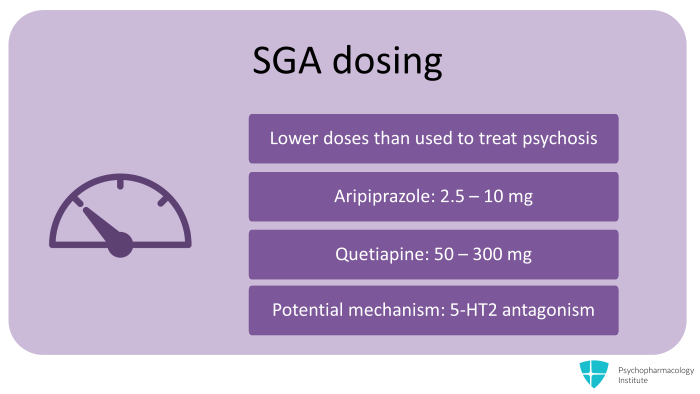 The doses of atypicals used for this purpose are distinctly lower than those used to treat psychosis.