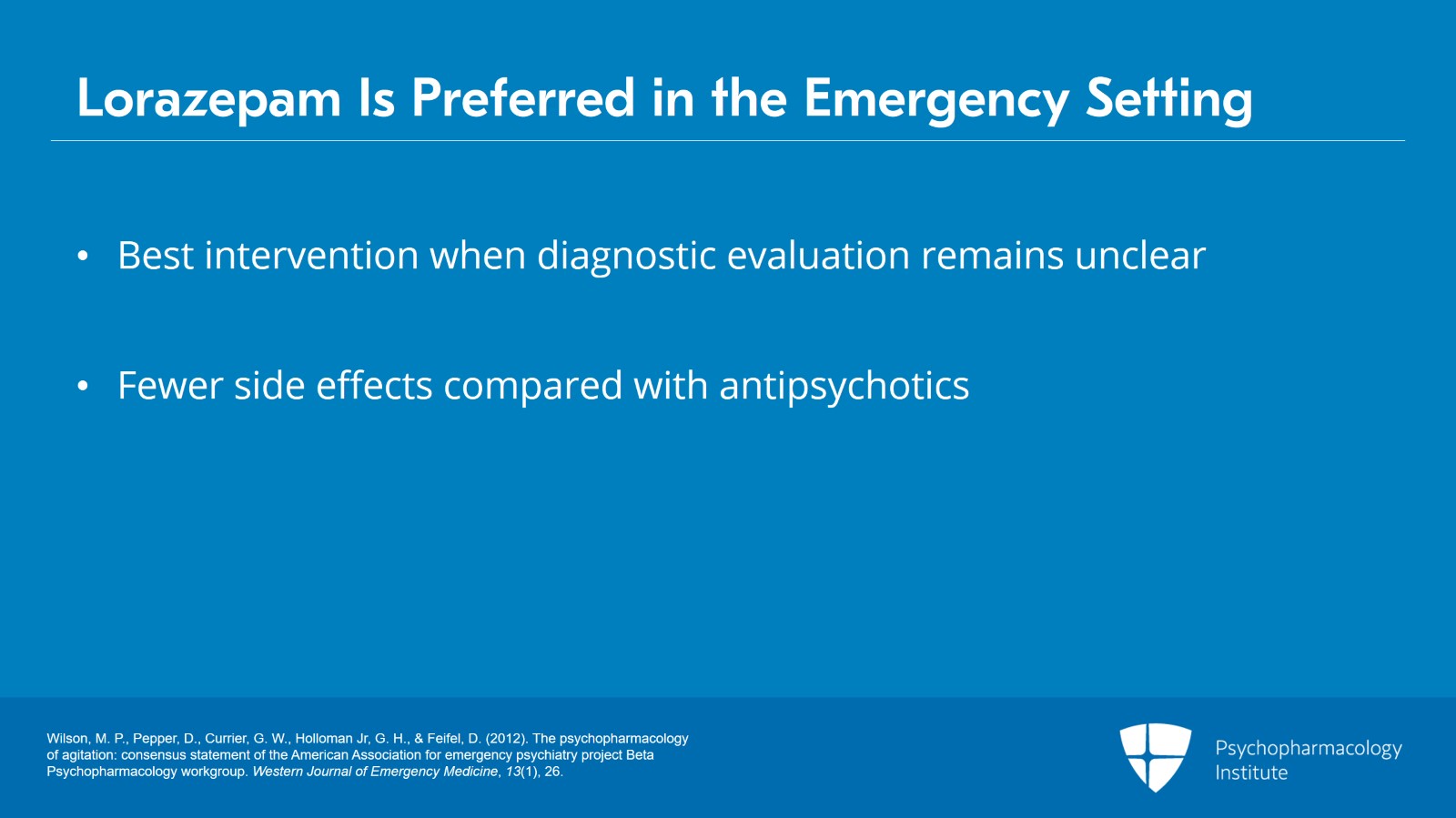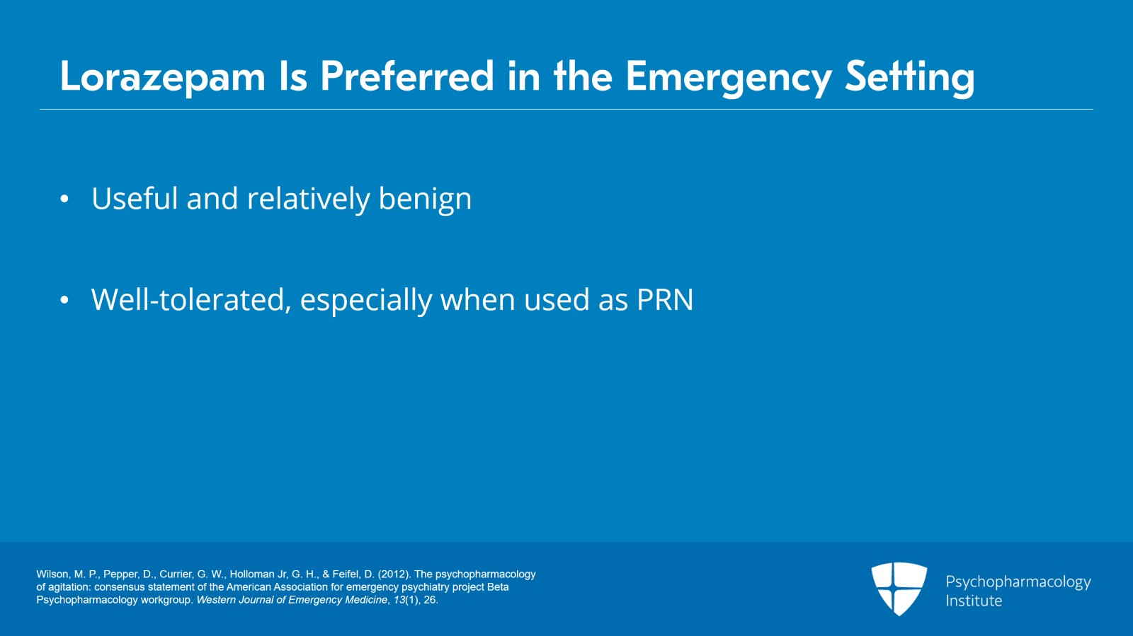 Let’s start off with talking about benzodiazepines, especially lorazepam, which sometimes is referred to as the emergency psychiatrist’s best friend because it’s useful in really many situations while being relatively benign.