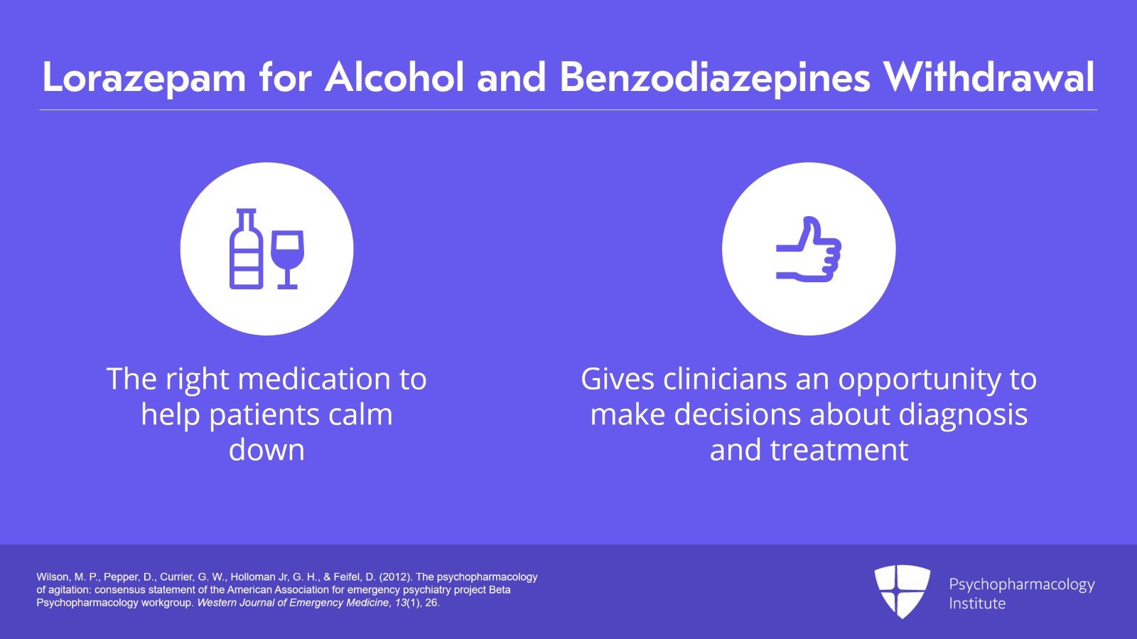 What we find is that benzodiazepines or lorazepam are often our best intervention when we don’t have a lot of information about the patient when our diagnostic evaluation remains unclear.