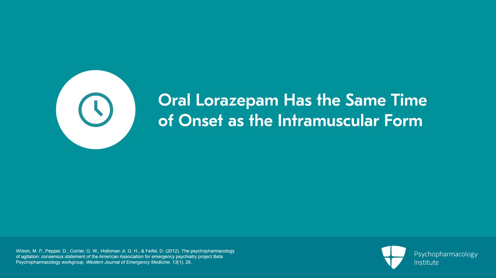 And what they don’t realize is that the time of onset for oral lorazepam is essentially the same as intramuscular.