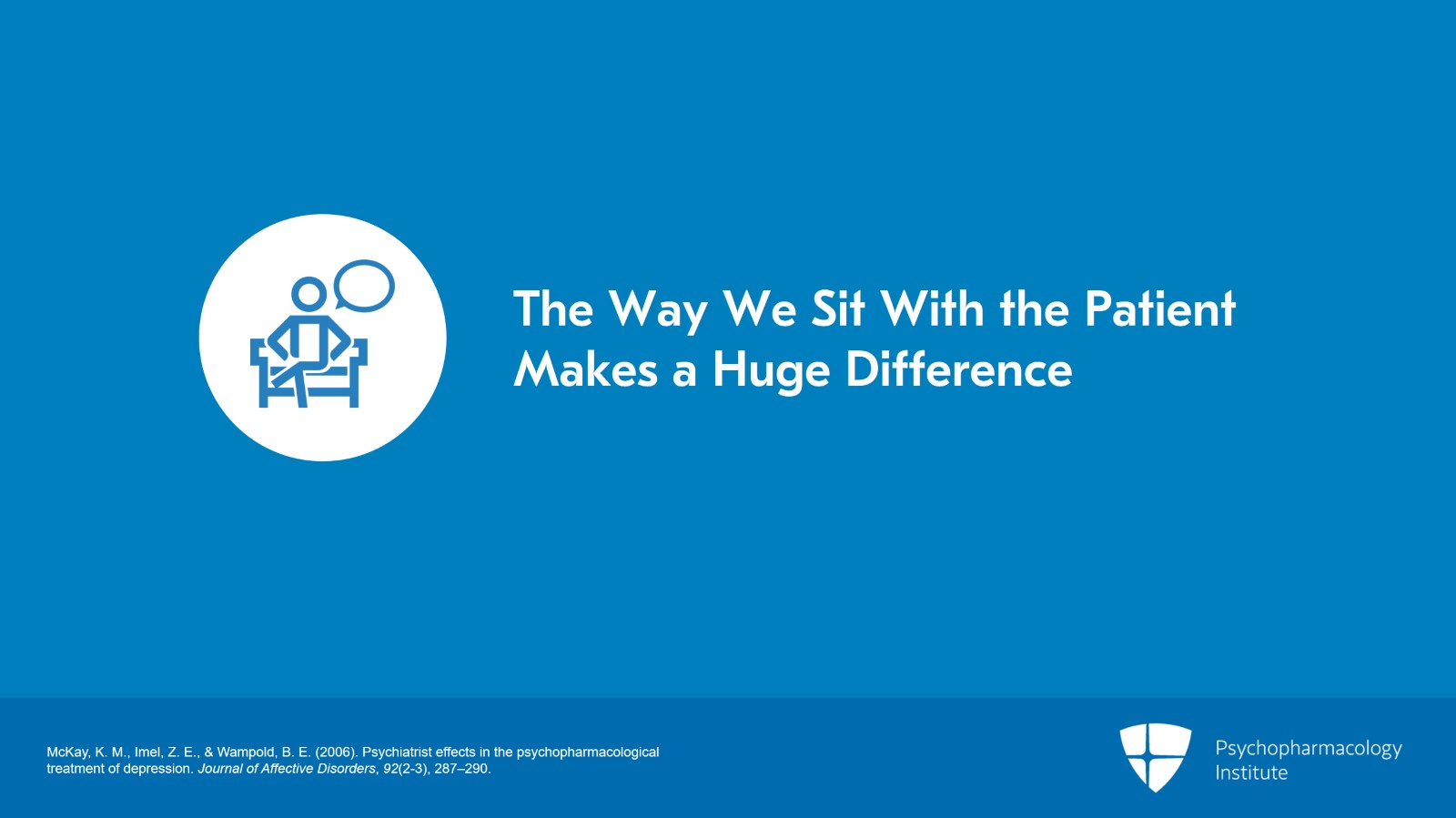 - McKay, K. M., Imel, Z. E., & Wampold, B. E. (2006). Psychiatrist effects in the psychopharmacological treatment of depression. Journal of Affective Disorders, 92(2-3), 287–290.
