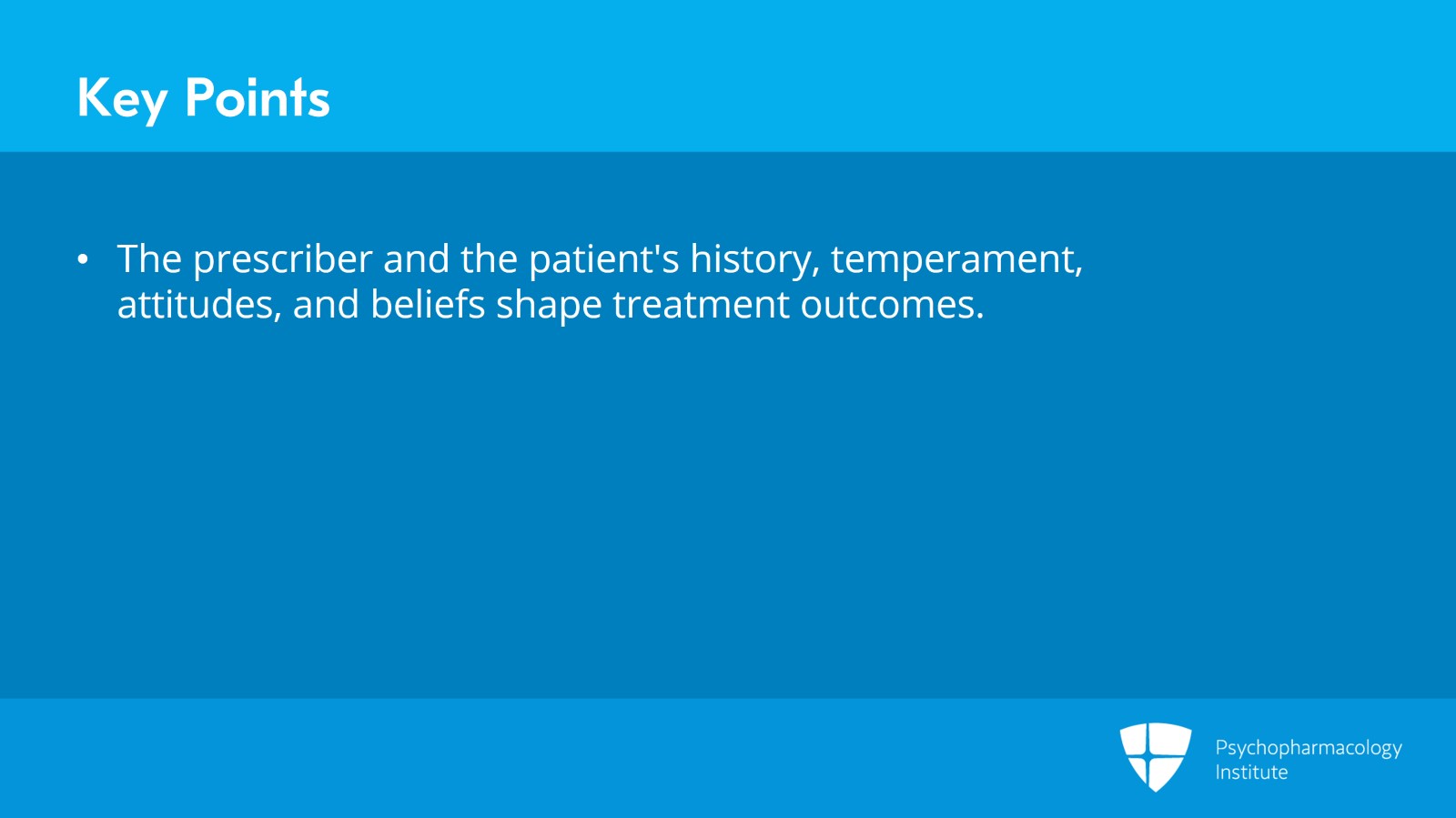 And as we said, the person of the prescriber as well as the patient's history, temperament, attitudes and beliefs, all profoundly shape treatment outcomes and should be considered by us when we're trying to address our patients and particularly our treatment-refractory patients.