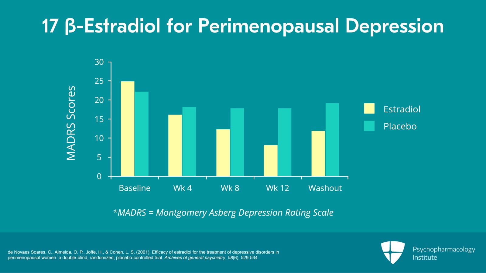 - de Novaes Soares, C., Almeida, O. P., Joffe, H., & Cohen, L. S. (2001). Efficacy of estradiol for the treatment of depressive disorders in perimenopausal women: a double-blind, randomized, placebo-controlled trial. Archives of general psychiatry, 58(6), 529-534.
