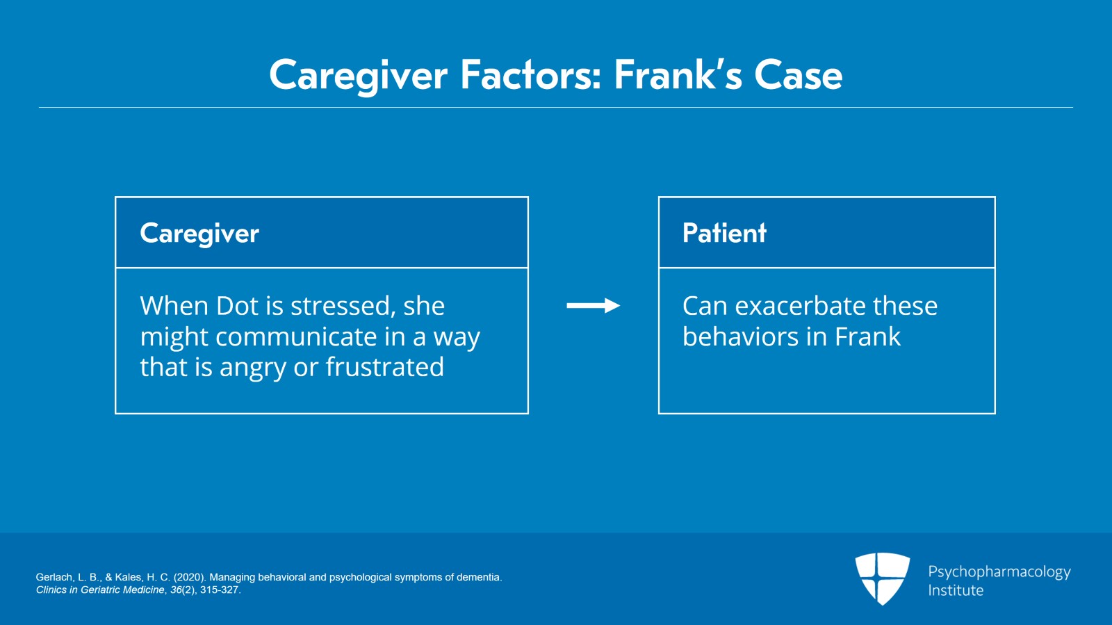 So if we think back to the case of Frank and Dot, when Dot is stressed, she may communicate with Frank in a way that is kind of angry or frustrated and that can sometimes exacerbate or trigger these behaviors.