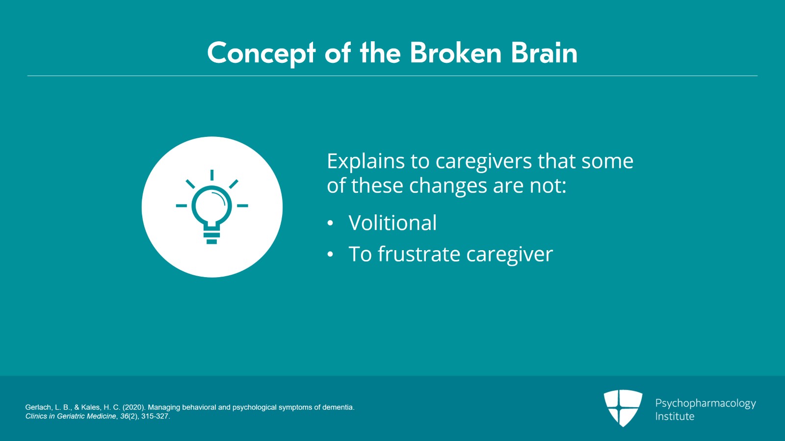 So, a colleague of mine talks about this concept of the broken brain. And this can be helpful sometimes in explaining to caregivers that some of these changes that they’re seeing are due to the underlying dementia and are not volitional or being done to frustrate the caregiver. And that can be helpful in discussing with caregivers.