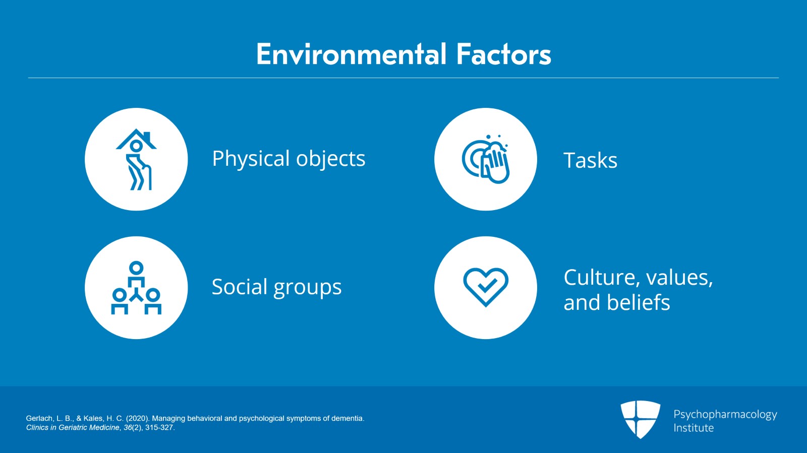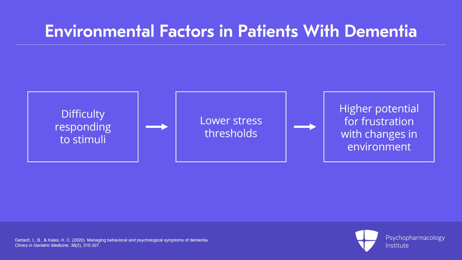 - Gerlach, L. B., & Kales, H. C. (2020). Managing behavioral and psychological symptoms of dementia. Clinics in Geriatric Medicine, 36(2), 315-327.