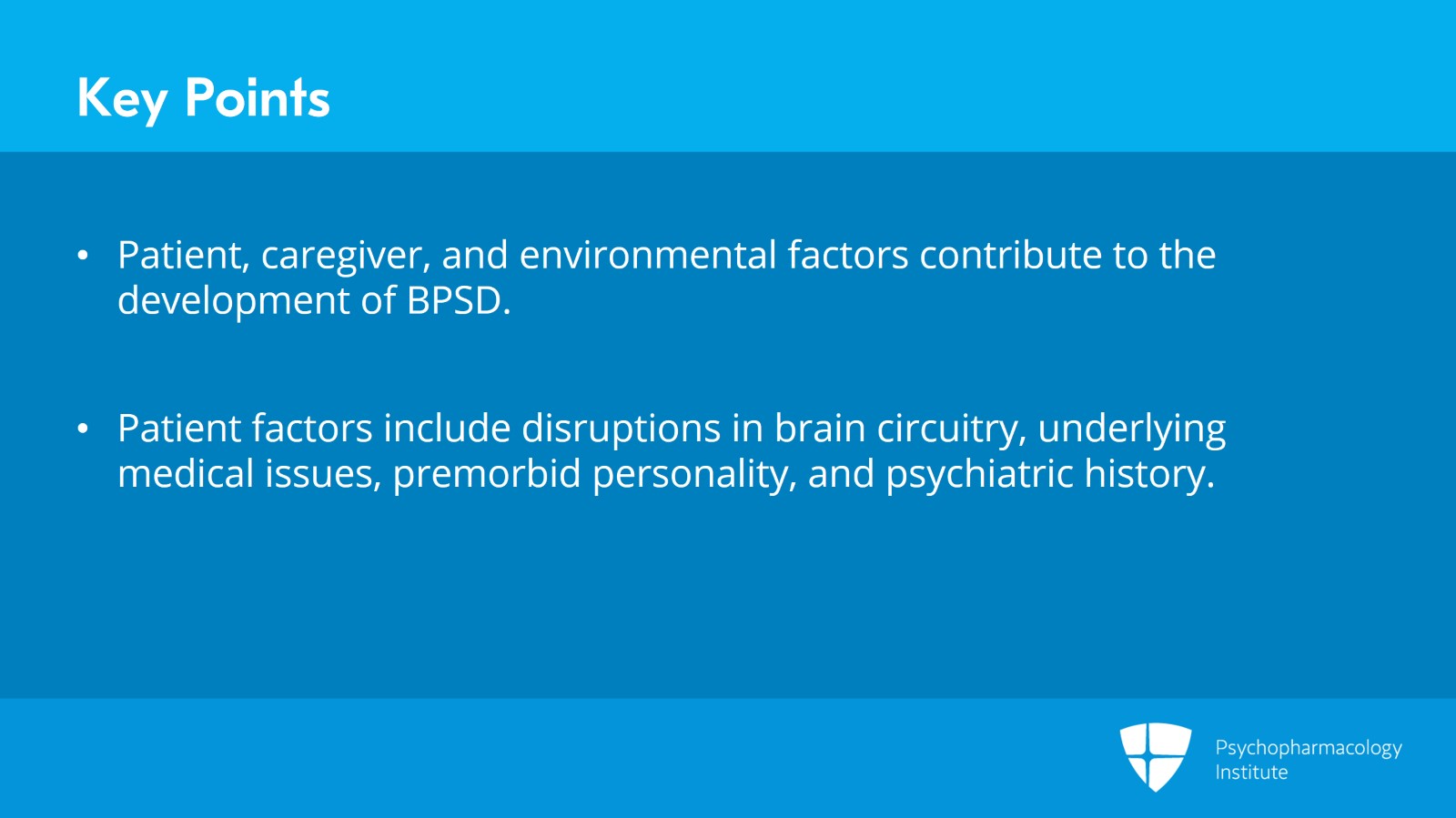 So next, we’re going to talk in more detail about some of the patient, caregiver, and environmental factors that can underlie the development of behavioral and psychological symptoms of dementia.