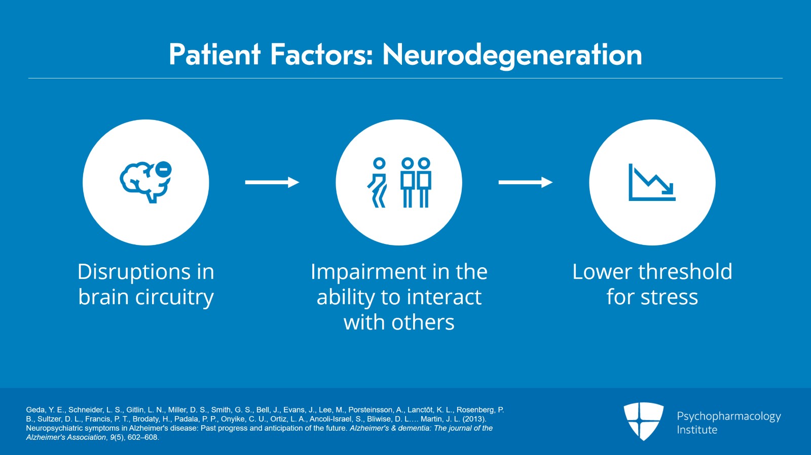 - Geda, Y. E., Schneider, L. S., Gitlin, L. N., Miller, D. S., Smith, G. S., Bell, J., Evans, J., Lee, M., Porsteinsson, A., Lanctôt, K. L., Rosenberg, P. B., Sultzer, D. L., Francis, P. T., Brodaty, H., Padala, P. P., Onyike, C. U., Ortiz, L. A., Ancoli-Israel, S., Bliwise, D. L.… Martin, J. L. (2013). Neuropsychiatric symptoms in Alzheimer's disease: Past progress and anticipation of the future. Alzheimer's & dementia: The journal of the Alzheimer's Association, 9(5), 602–608.