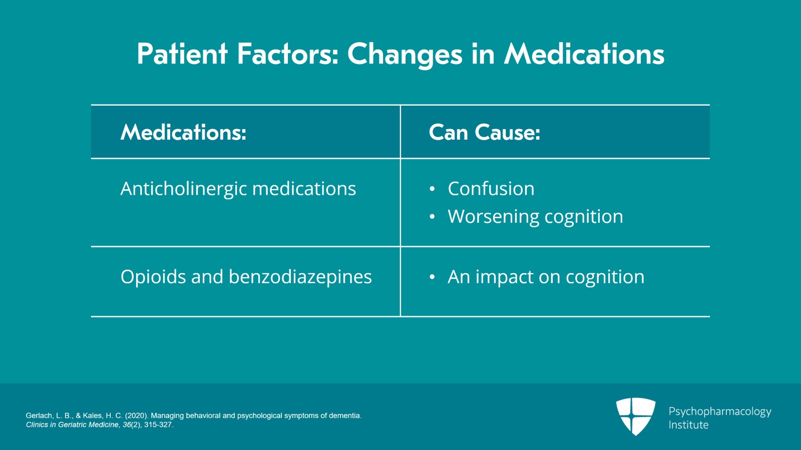 So anticholinergic medications are notorious for causing confusion or worsening cognition in older adults. So thinking about, has a patient recently been started on diphenhydramine or other highly anticholinergic medications?