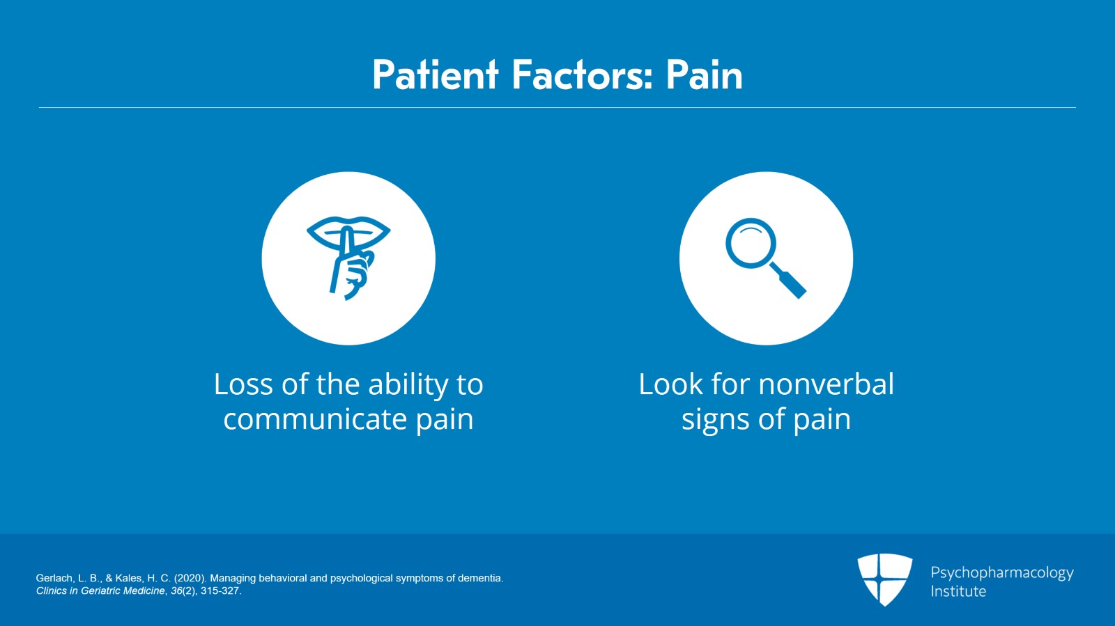 So as patients with dementia lose the ability to communicate pain, we have to think and look for nonverbal signs of pain or discomfort, so grimacing, guarding.